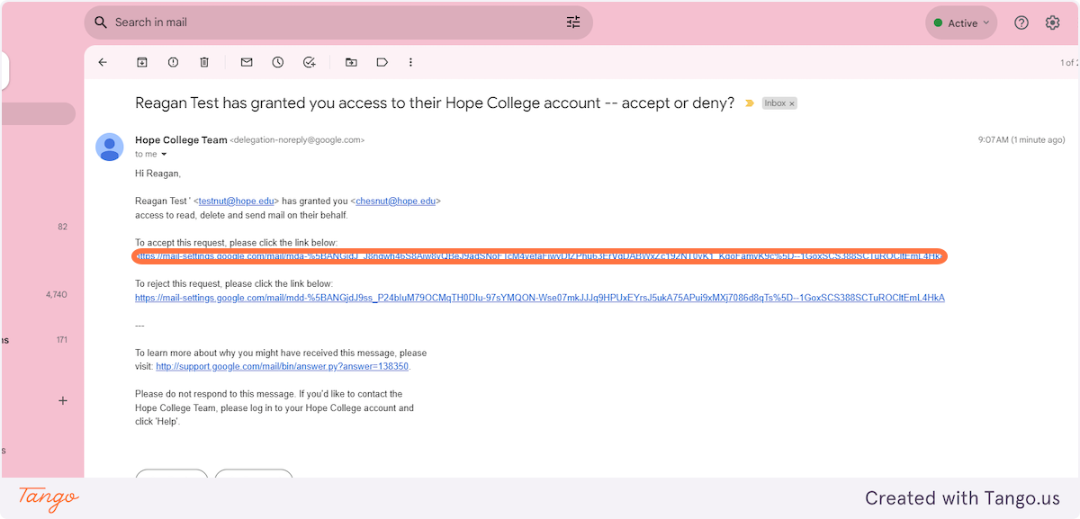 9. The user must go to their personal 1Hope account and click the email to accept the delegation request.
