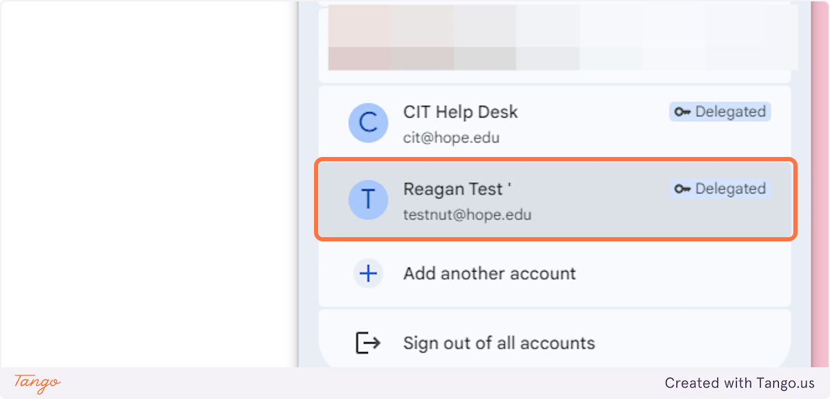 Once accepted, the delegate can open the shared mailbox by clicking their profile icon in Gmail and selecting the shared account from the list.