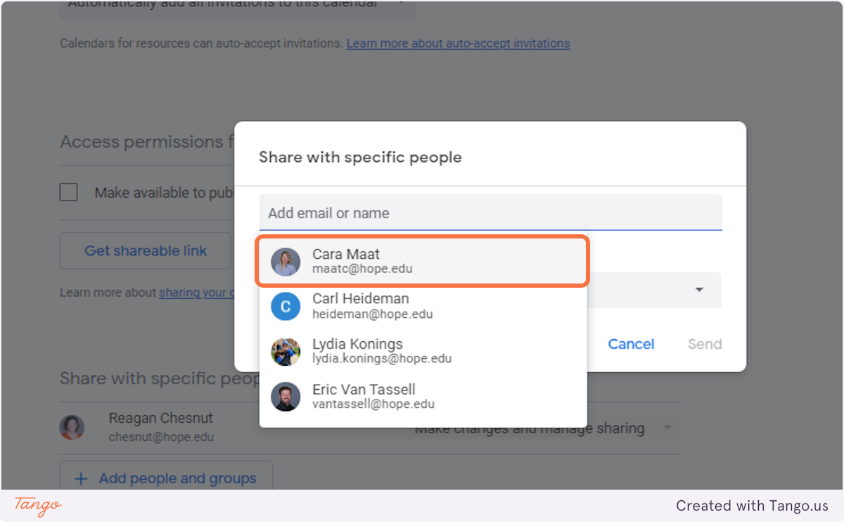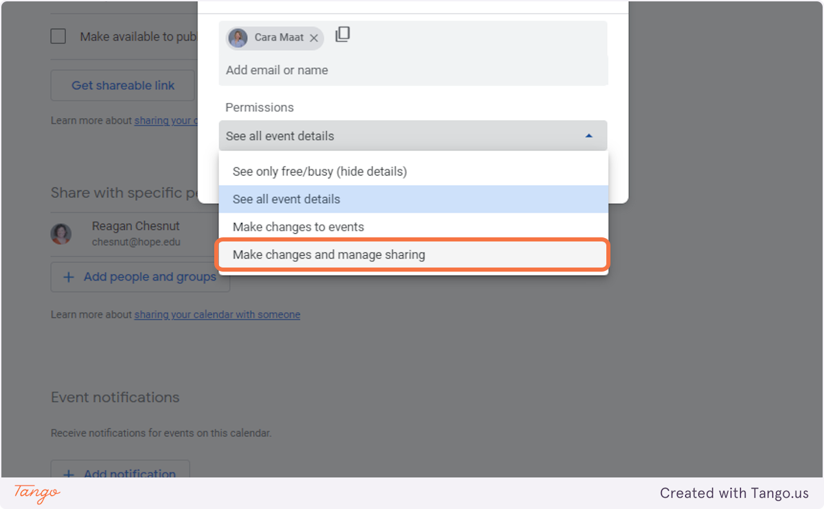 The people you added will get an invitation to access the calendar. Once they accept, they’ll be able to view and manage events based on the permissions you chose.
