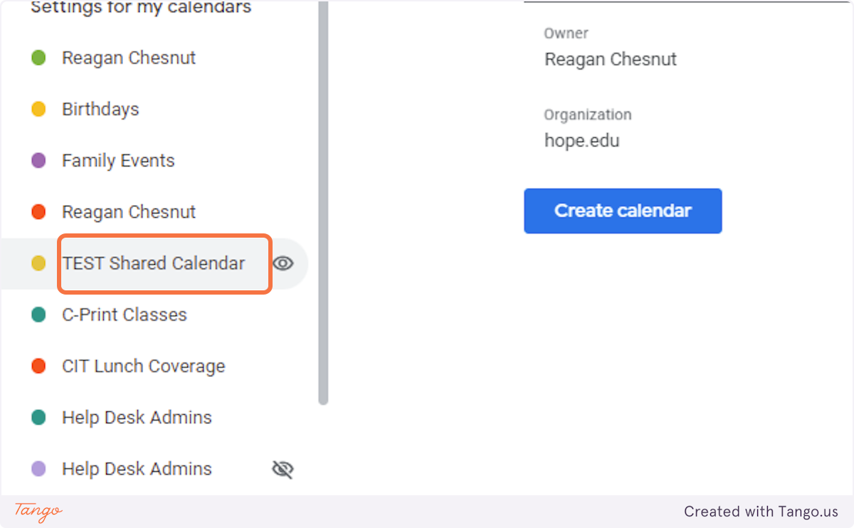 1. Click on the calendar you want to share in the left navigation menu.