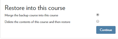 - In the “Restore into this course” section select "Merge the backup course into this course" and click Continue