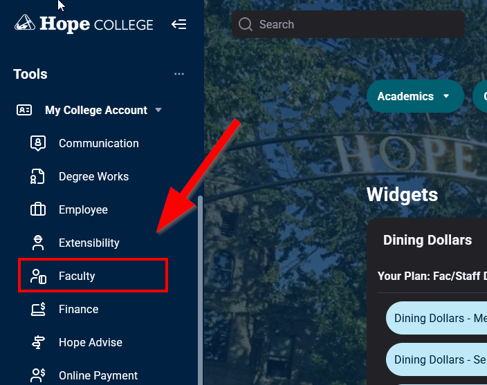 1. Go to app.hope.edu and click on "My College Account" then "Faculty"